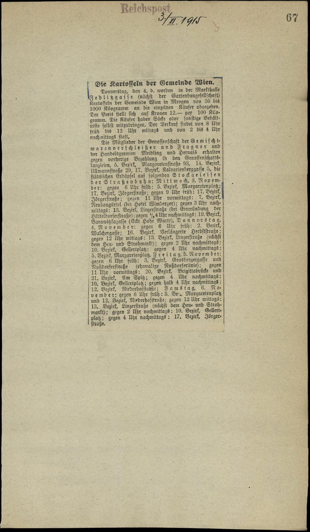 Die Kartoffeln der Gemeinde Wien.