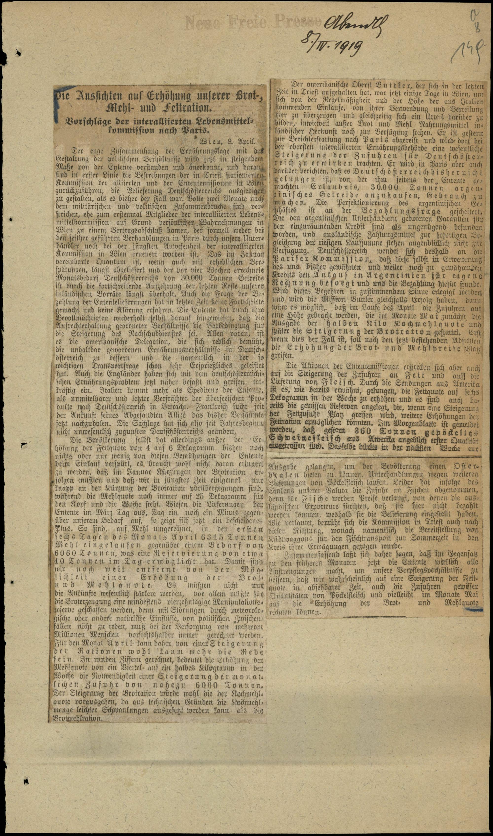 Die Aussichten auf Erhöhung unserer Brot-, Mehl- und Fettration.