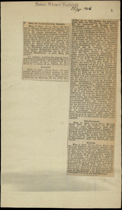 / Börse für Landwirtschaftliche Produkte. 28.4.1916