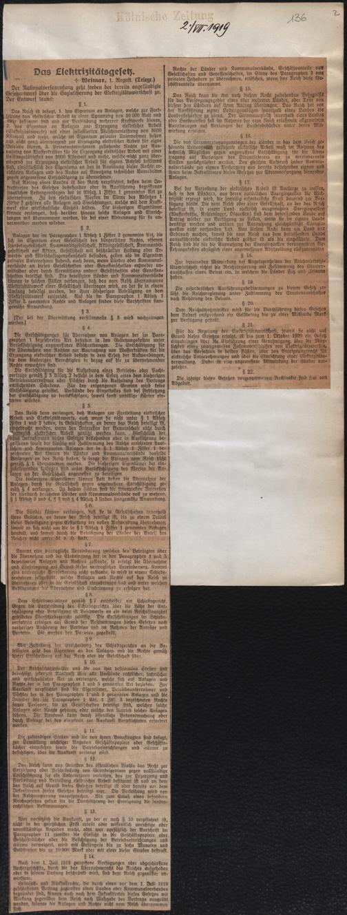 / Das Elektrizitätsgesetz. 2.7.1919