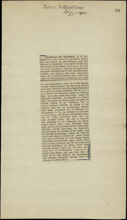 / Fremdwort und Deutschtum. 21.1.1915