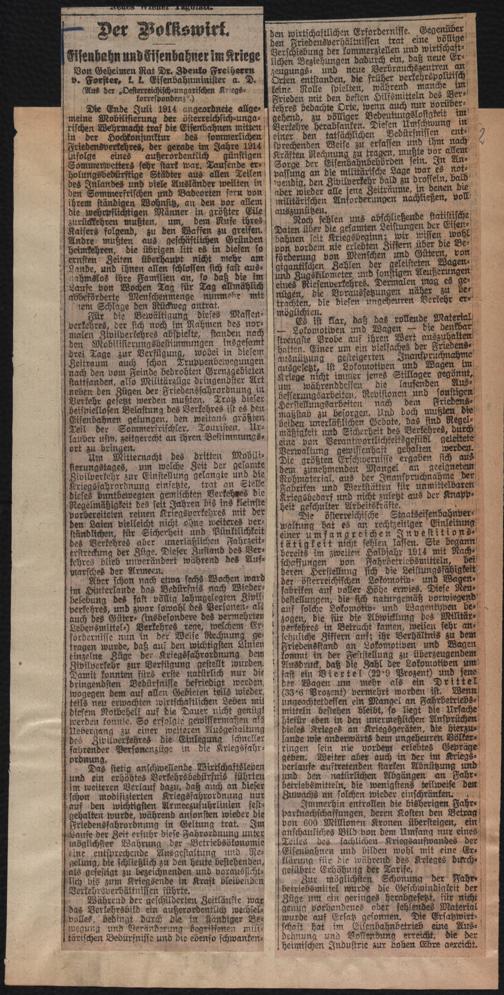 / Der Volkswirt. Eisenbahn und Eisenbahner im Kriege. 11.7.1917