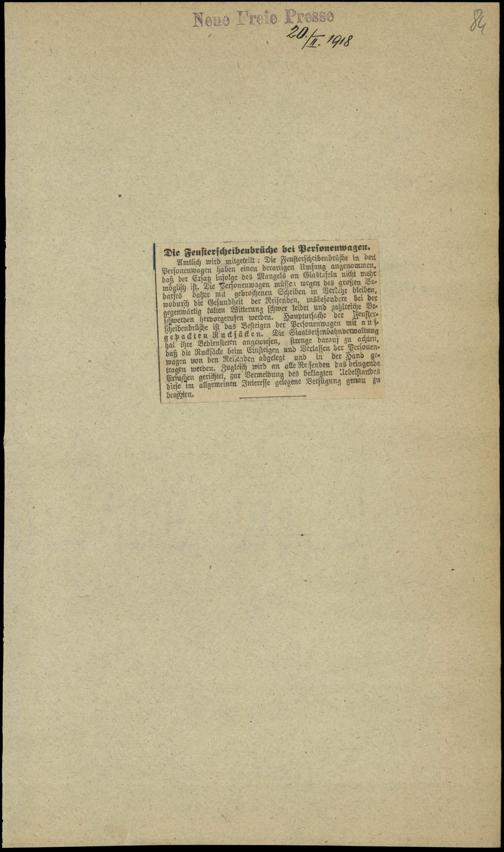 / Die Fensterscheibenbrüche bei Personenwagen. 20.2.1918