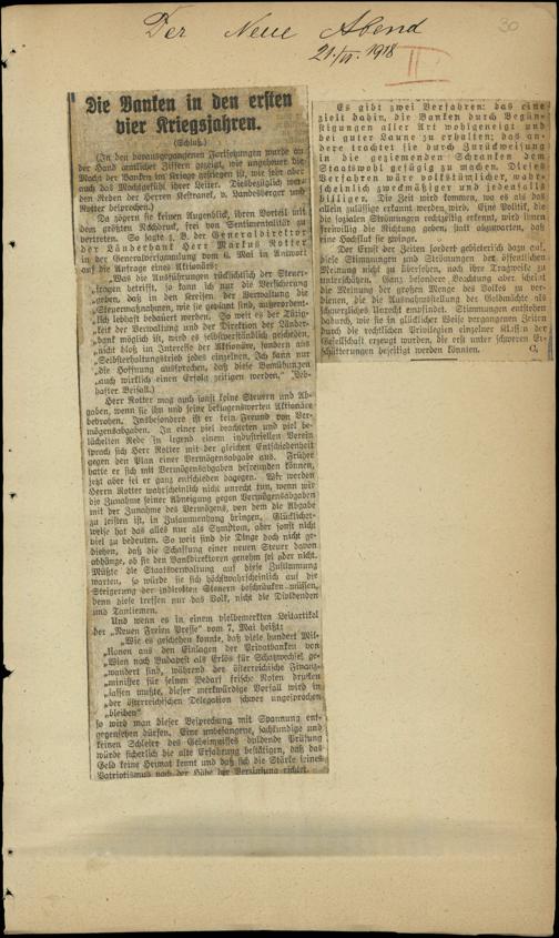 / Die Banken in den ersten vier Kriegsjahren. 21.6.1918