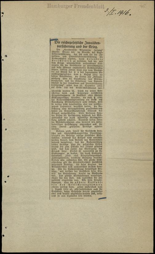 / Die reichsgesetzliche Invalidenversicherung und der Krieg. 3.1.1916