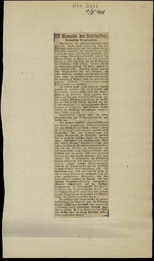 / Die Ausgabe des Stadtgeldes. 1.11.1918