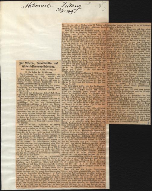 / Zur Alters-, Invaliditäts- und Hinterlassenenversicherung. 22.5.1919