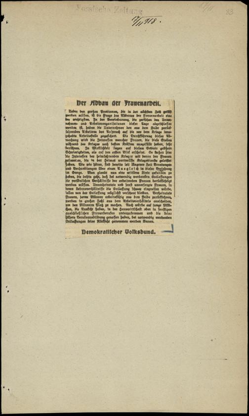/ Der Abbau der Frauenarbeit. 17.11.1918