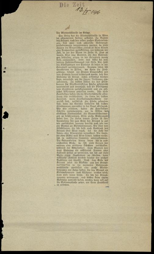 / Die Mietverhältnisse im Kriege. 13.2.1916