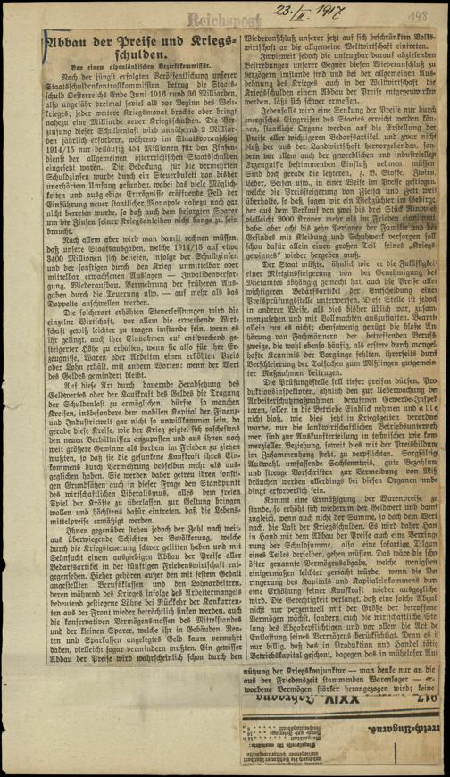 / Abbau der Preise und Kriegsschulden. 23.2.1917