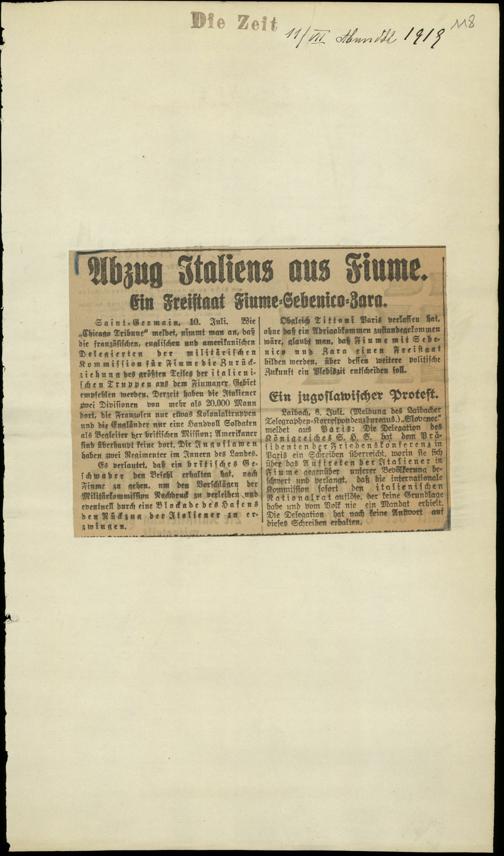 / Abzug Italiens aus Fiume. 11.7.1919