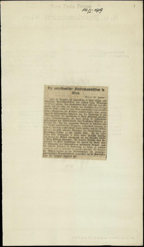 / Die amerikanische Studienkommission in Wien. 14.1.1919