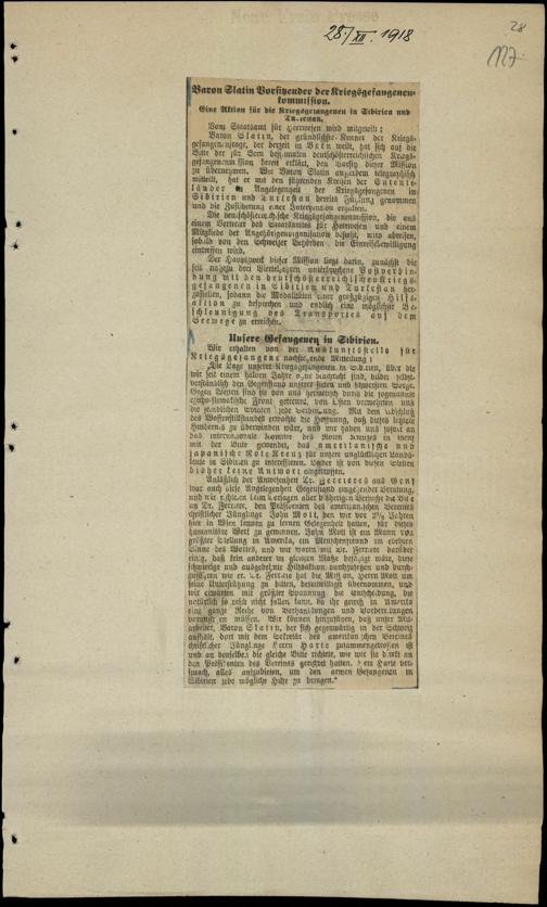 / Baron Slatin Vorsitzender der Kriegsgefangenenkommission. 28.12.1918