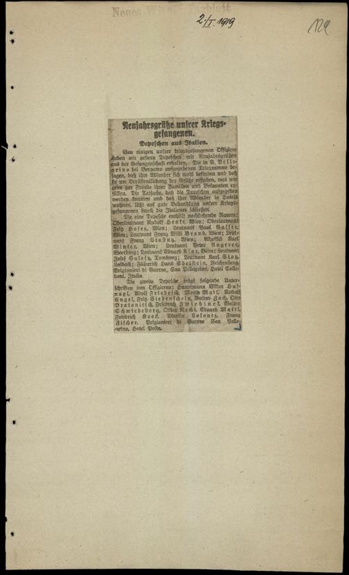 / Neujahrsgrüße unsrer Kriegsgefangenen. 2.1.1919