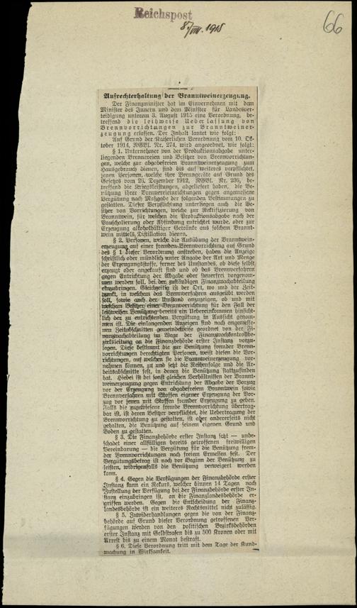 / Aufrechterhaltung der Branntweinerzeugung. 8.8.1915
