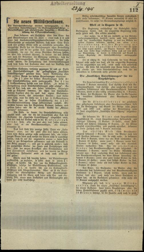 / Die neuen Militärpensionen. 23.6.1915