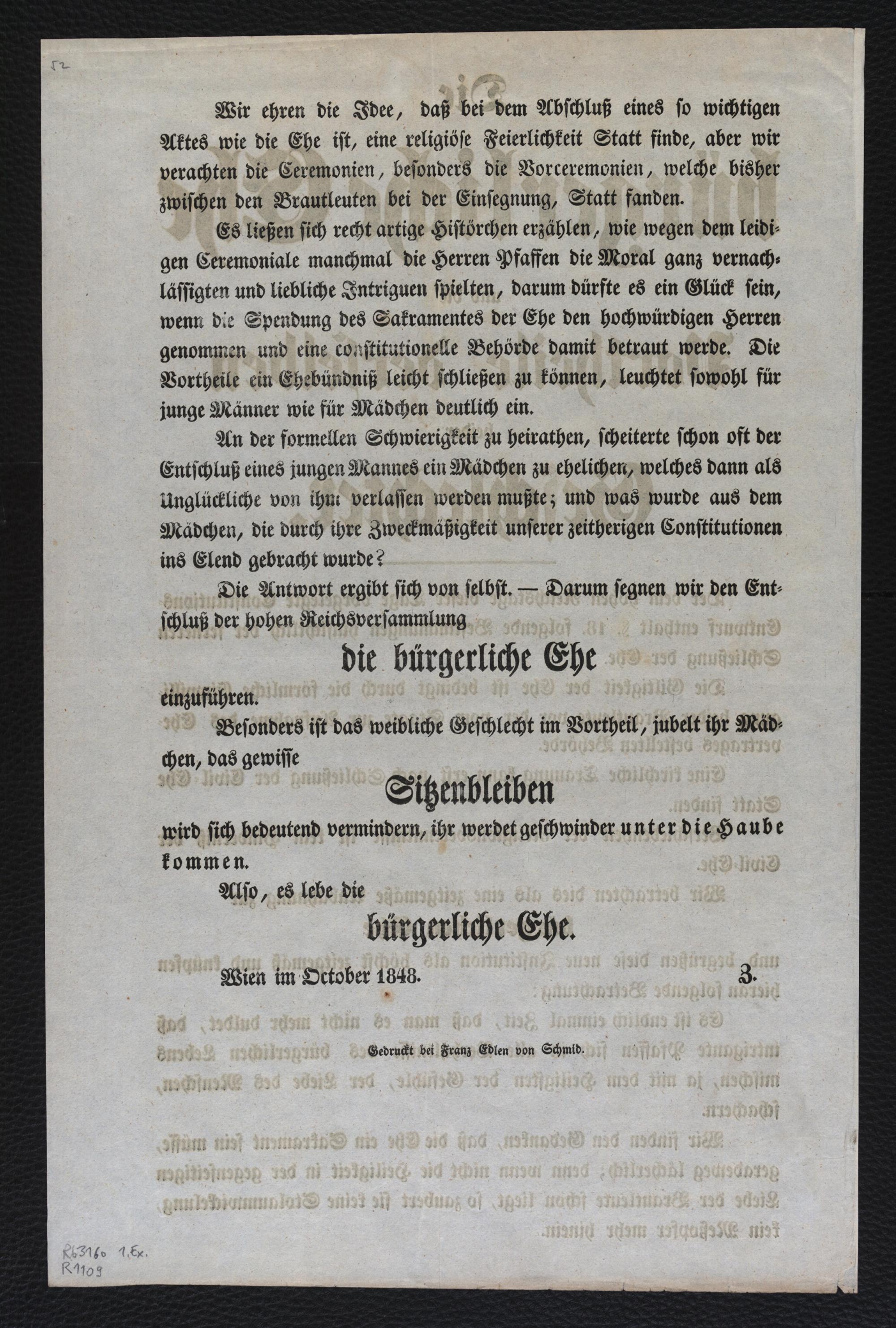 Die bürgerliche Ehe und die Vortheile derselben beider Geschlechter : [Wien im October 1848] / [Z.]