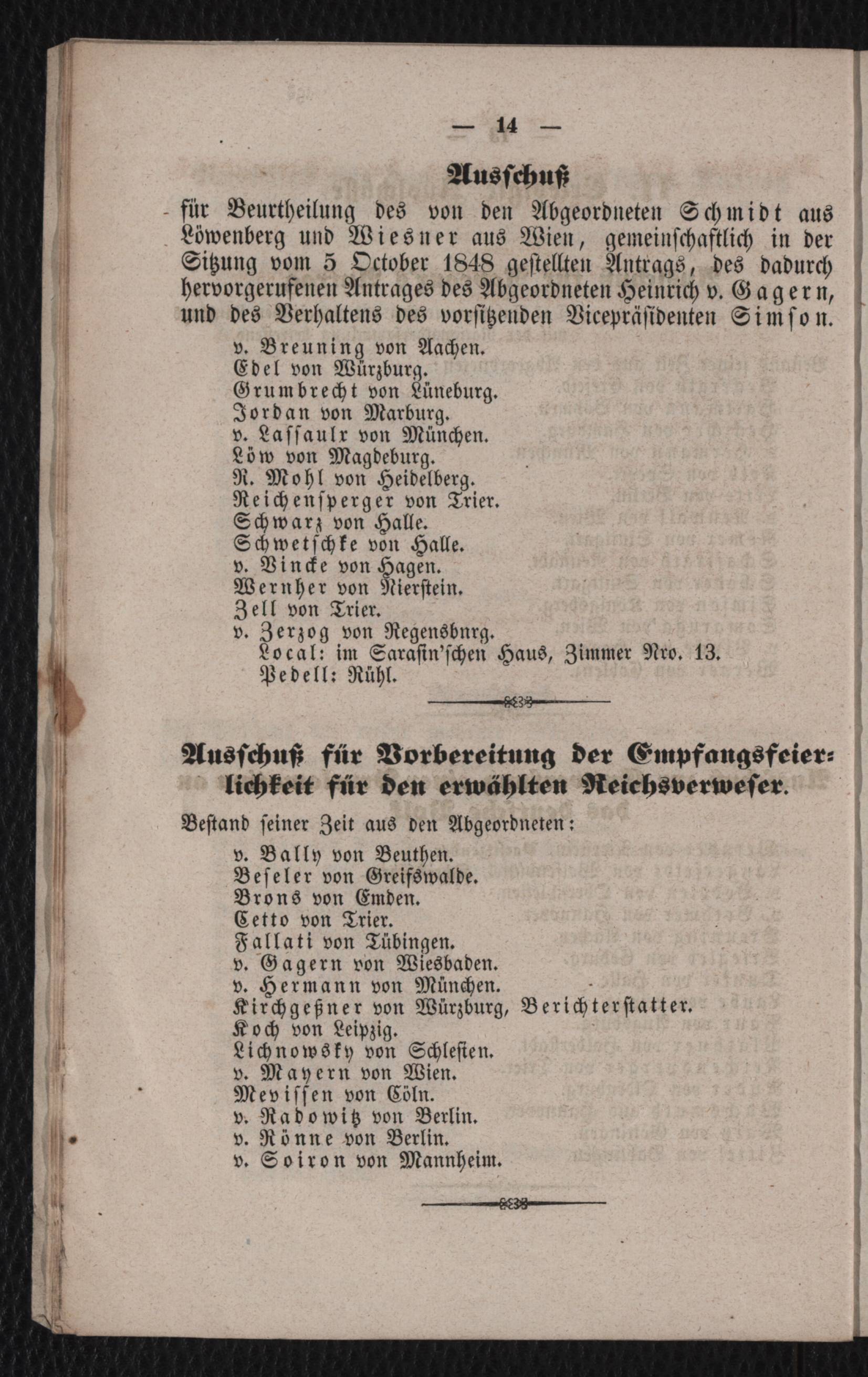 Verzeichniß der Mitglieder der Ausschüsse bei der verfassunggebenden deutschen Reichsversammlung : Aufgestellt im Dezember 1848