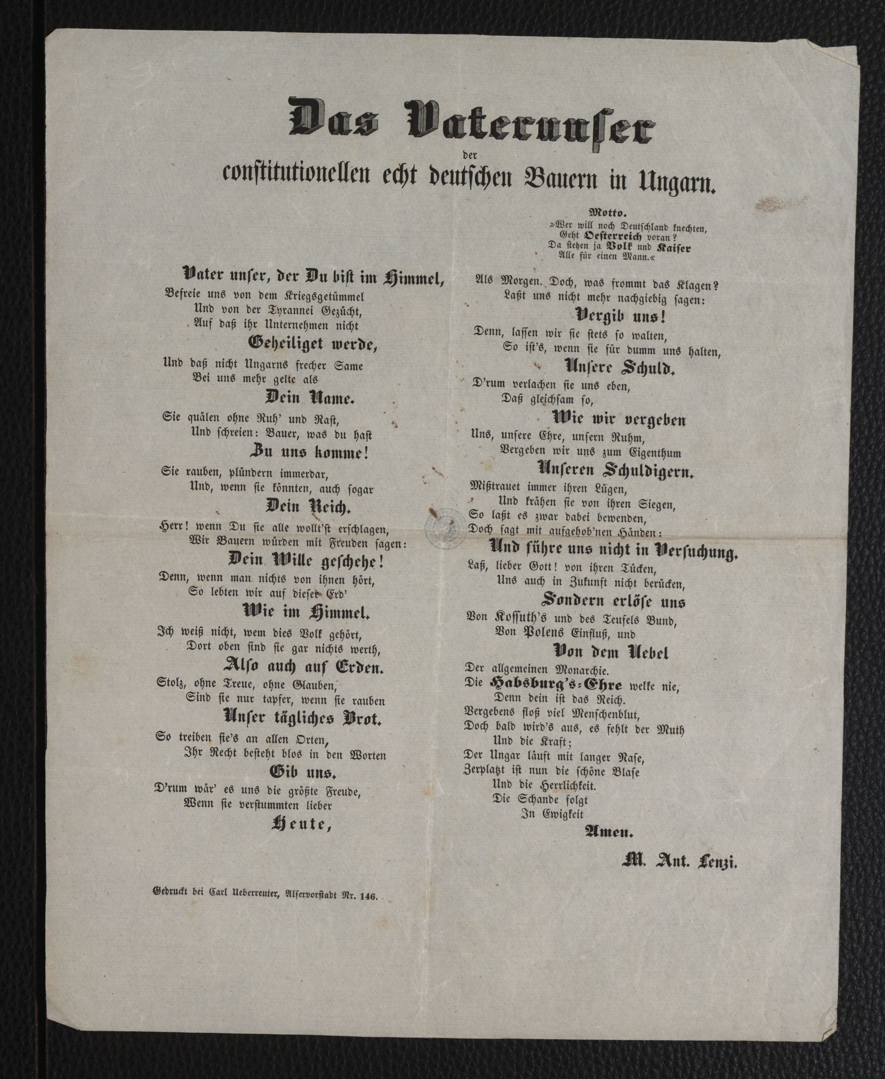 Das Vaterunser der constitutionellen echt deutschen Bauern in Ungarn / M. Ant. Lenzi