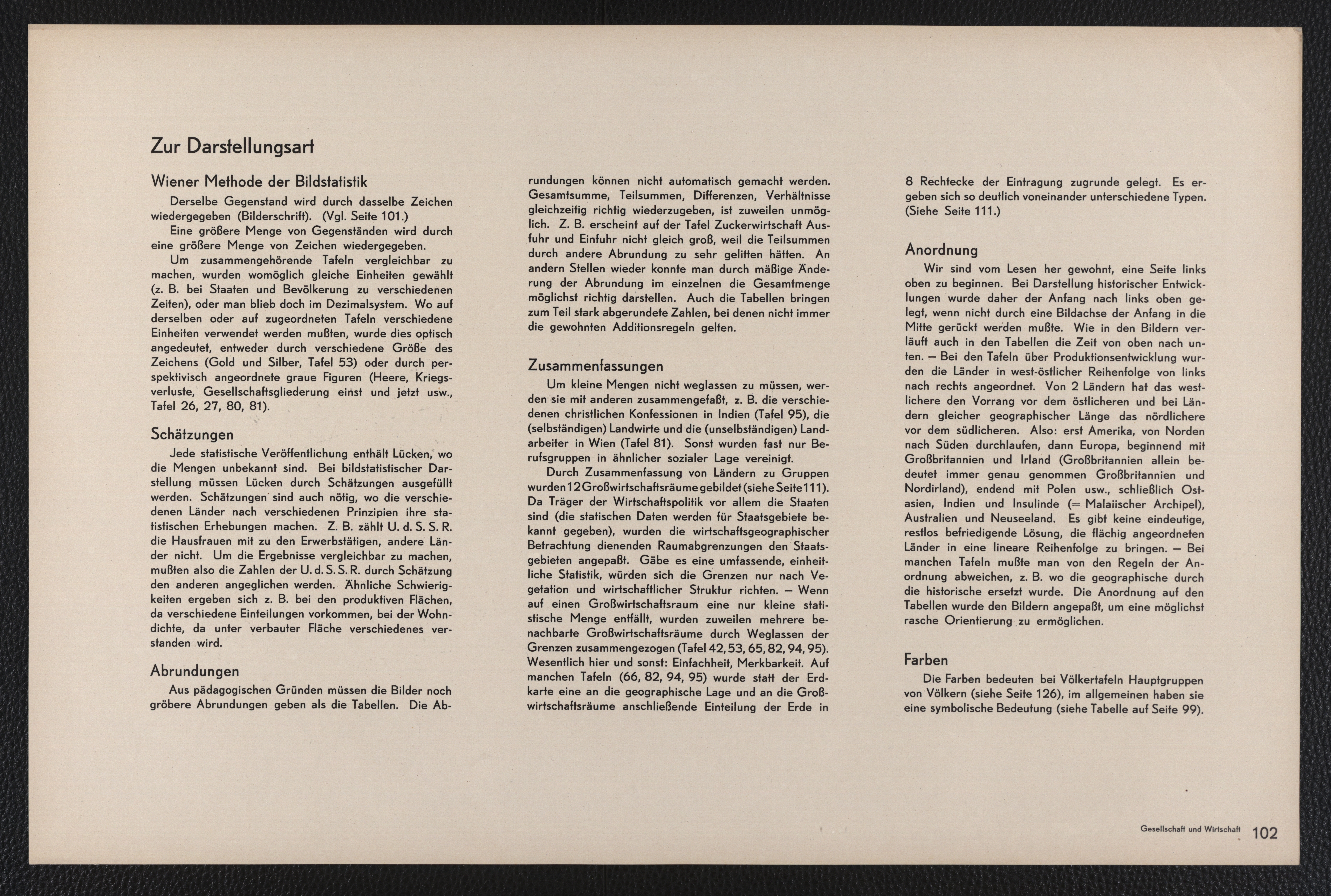 Gesellschaft und Wirtschaft : bildstatistisches Elementarwerk ; das Gesellschafts- und Wirtschaftsmuseum in Wien zeigt in 100 farbigen Bildtafeln Produktionsformen, Gesellschaftsordnungen, Kulturstufen, Lebenshaltungen / [Otto Neurath]