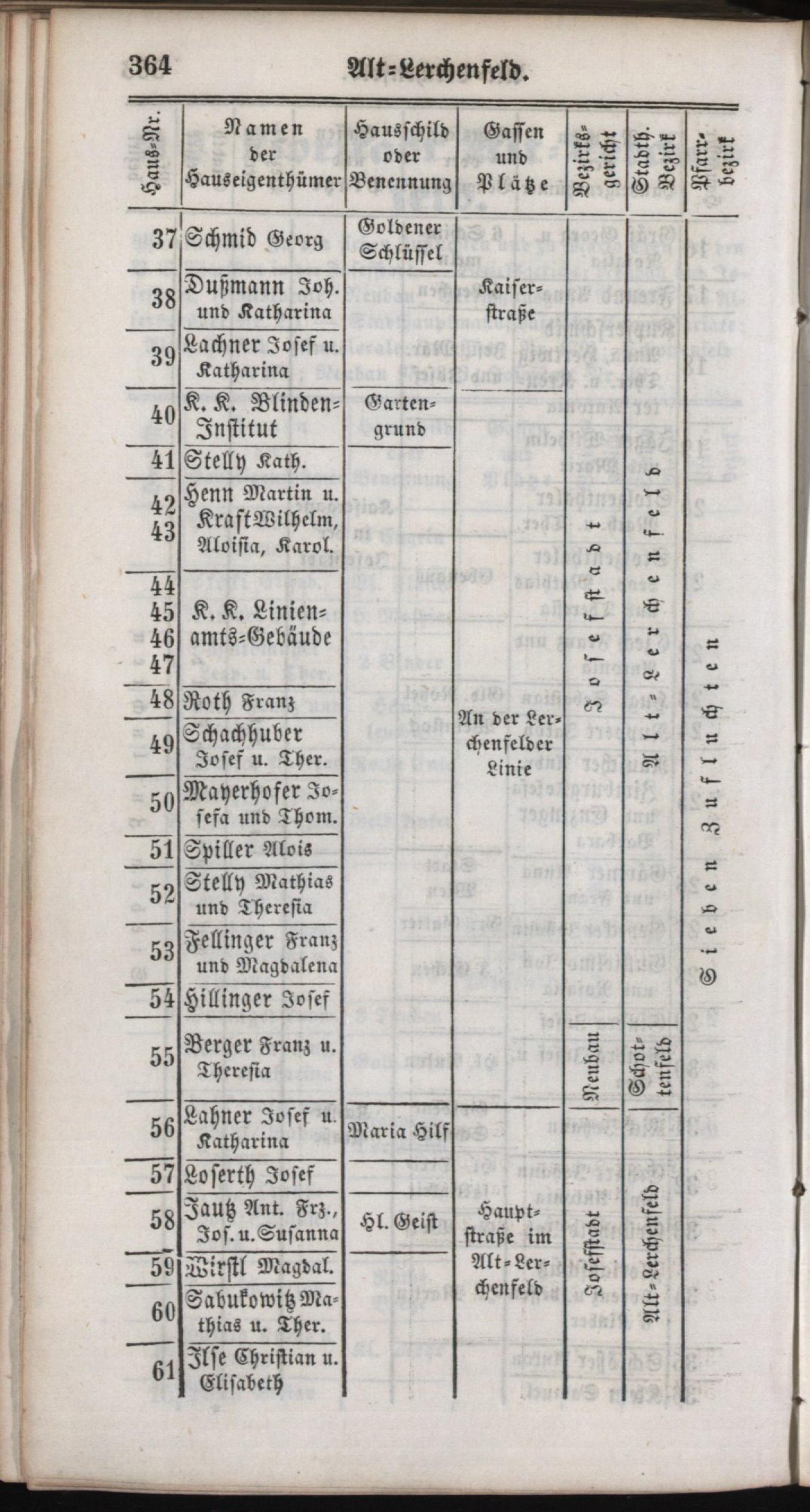 Neuester, verbesserter Häuser-Schema der kaiserl. königl. Reichshaupt- und Residenzstadt Wien : mit allen Vorstädten, der Brigittenau, den Zwischenbrücken und den Praterhütten ; Mit genauer Angabe der Hausnummern, Hauseigenthümer, Hausschilder, Gassen, Plätze, Gerichts-, Stadthauptmannschafts- und Pfarrbezirke ; Für das Jahr 1852