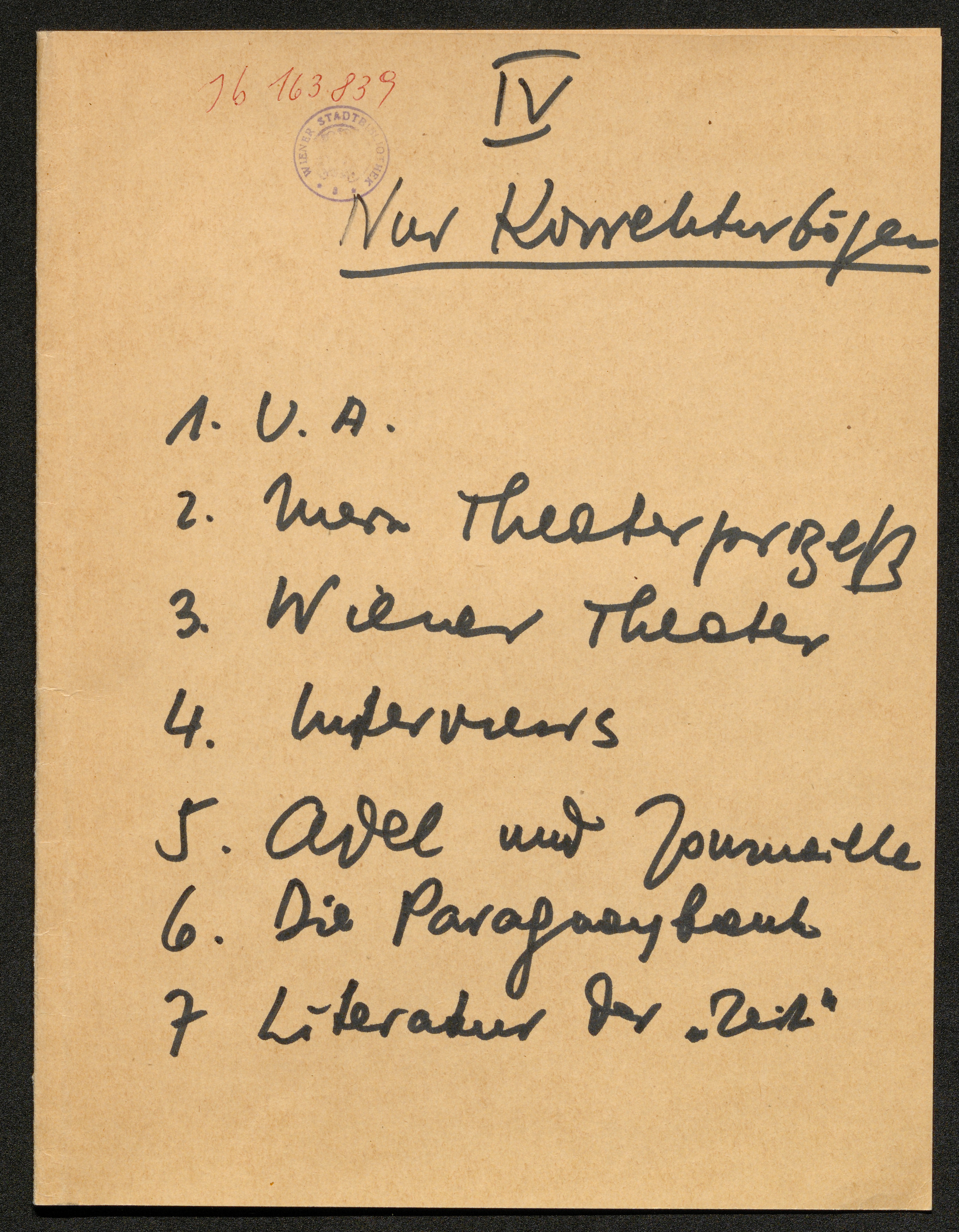 Korrigiertes Material, Korrekturbögen und "Abgelegte" zu "Kultur und Presse"