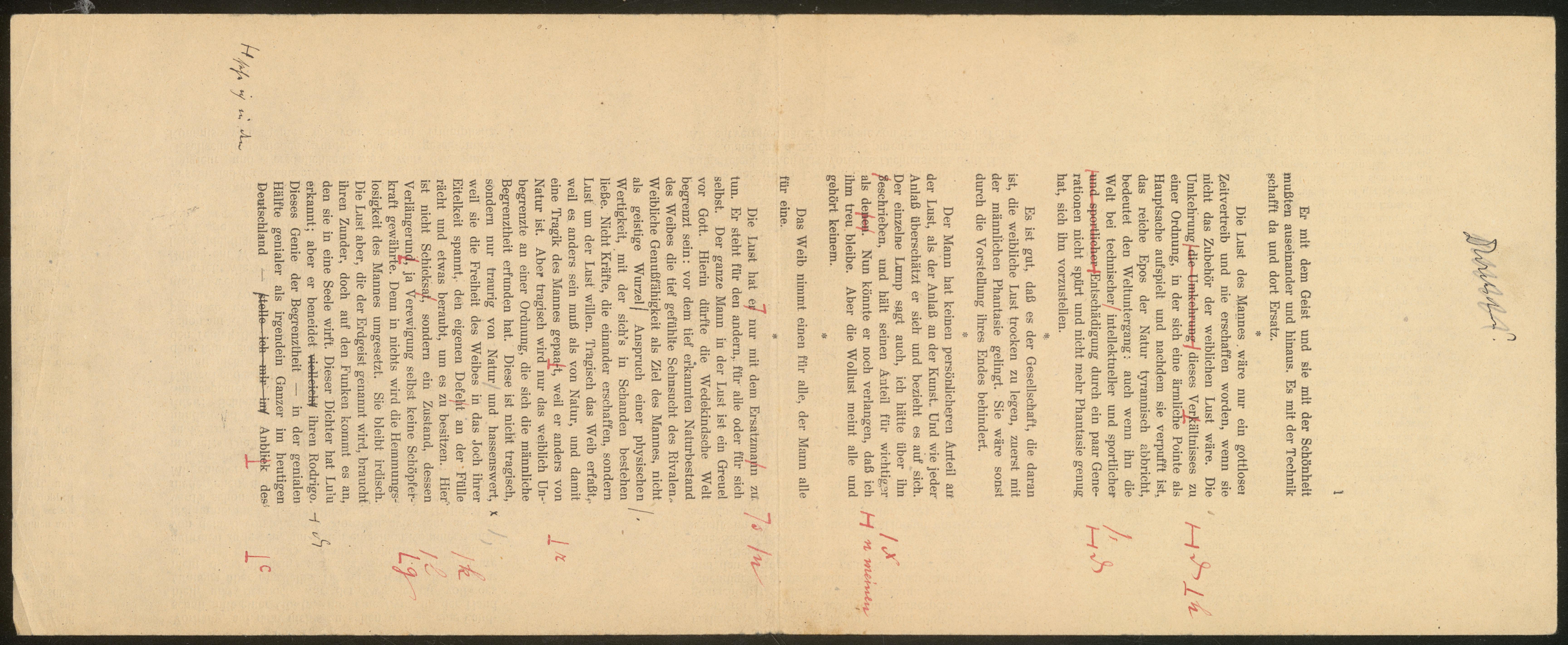Korrekturfahnen (1. und 2. Korrektur) zur Aphorismensammlung "Nachts"