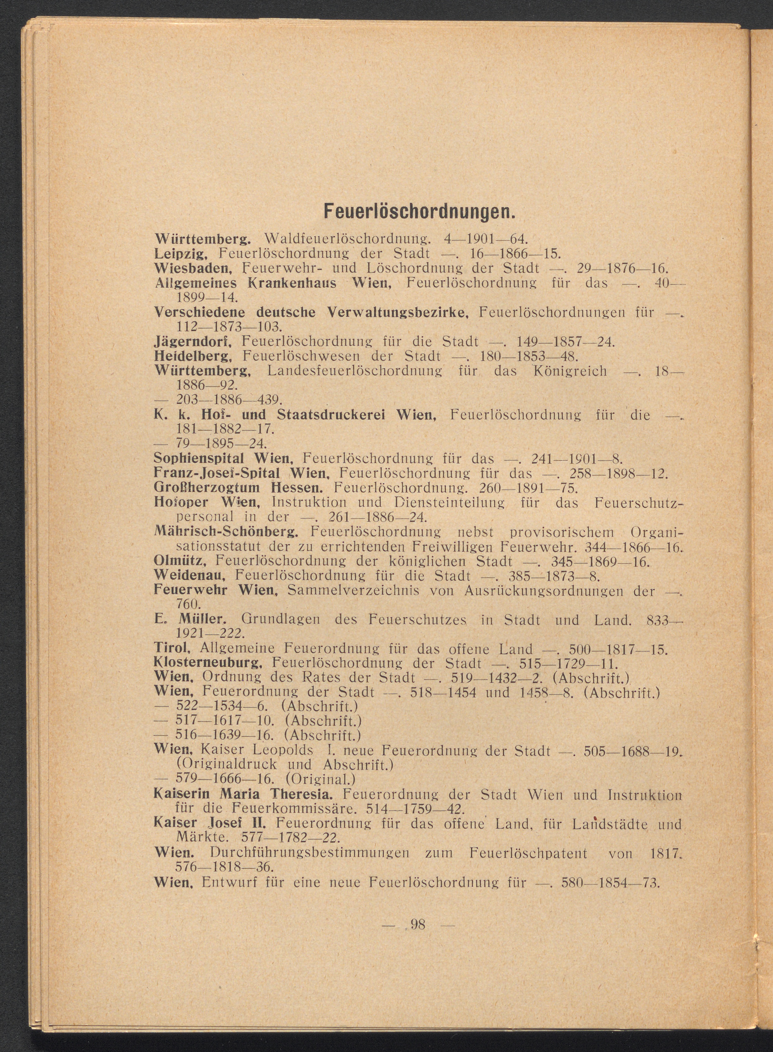 Feuerwehrkommando der Stadt Wien. Katalog (Catalog) der Fachbücherei.