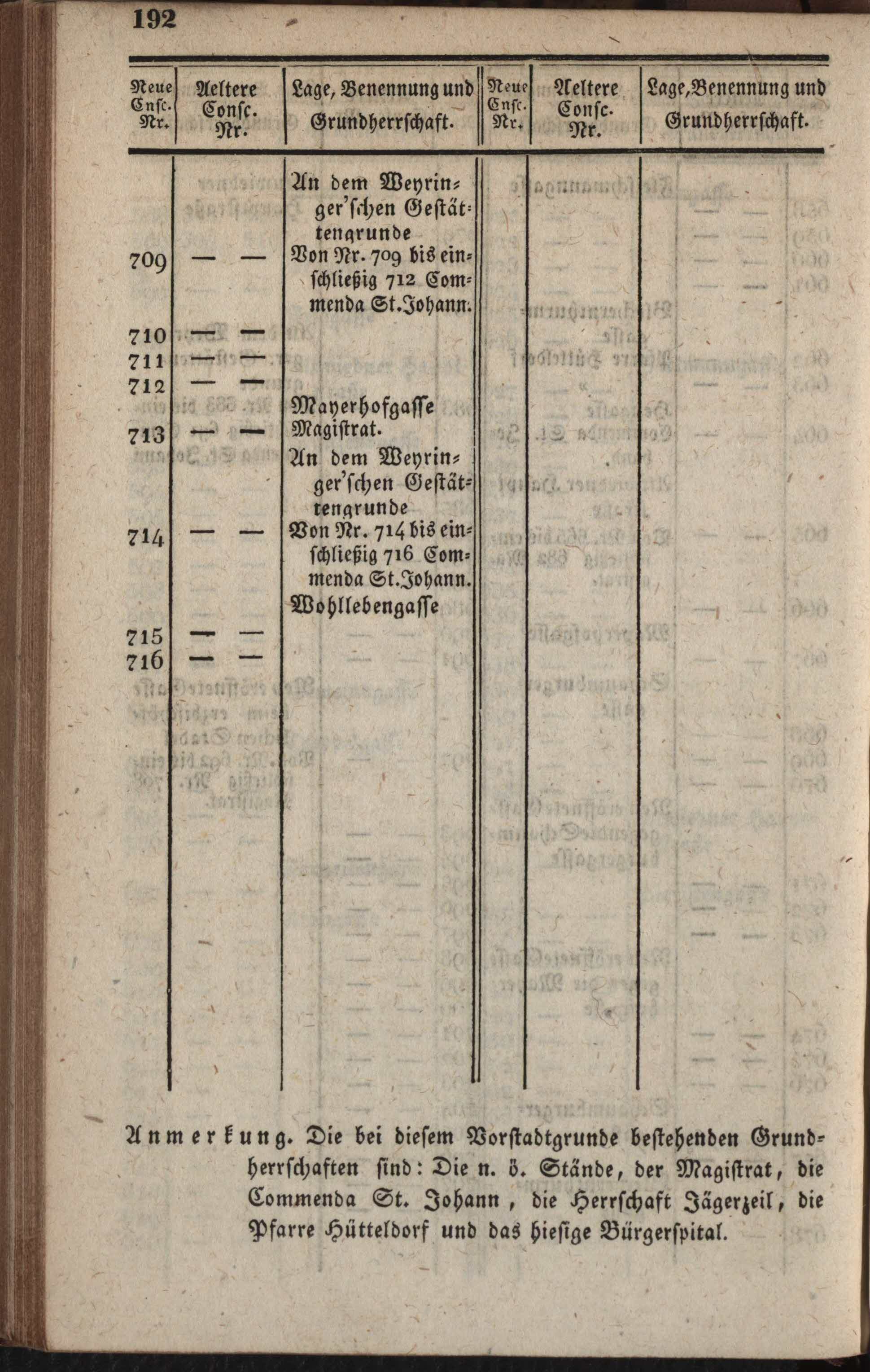 Darstellung der bei den Häusern in der Stadt und in den sämmtlichen Vorstädten Wiens einschreitenden Grundherrlichkeiten : nebst besonderen Verzeichnissen über die sowohl ganz, als auch nur theilweise dem n. ö. ständischen Cataster und der n. ö. Landtafel einverleibten, dann der Fideicommiß-Häuser und der bei der inneren Stadt und bei jedem einzelnen Vorstadtgrunde bestehenden Grundherrschaften / von Karl Ponschab