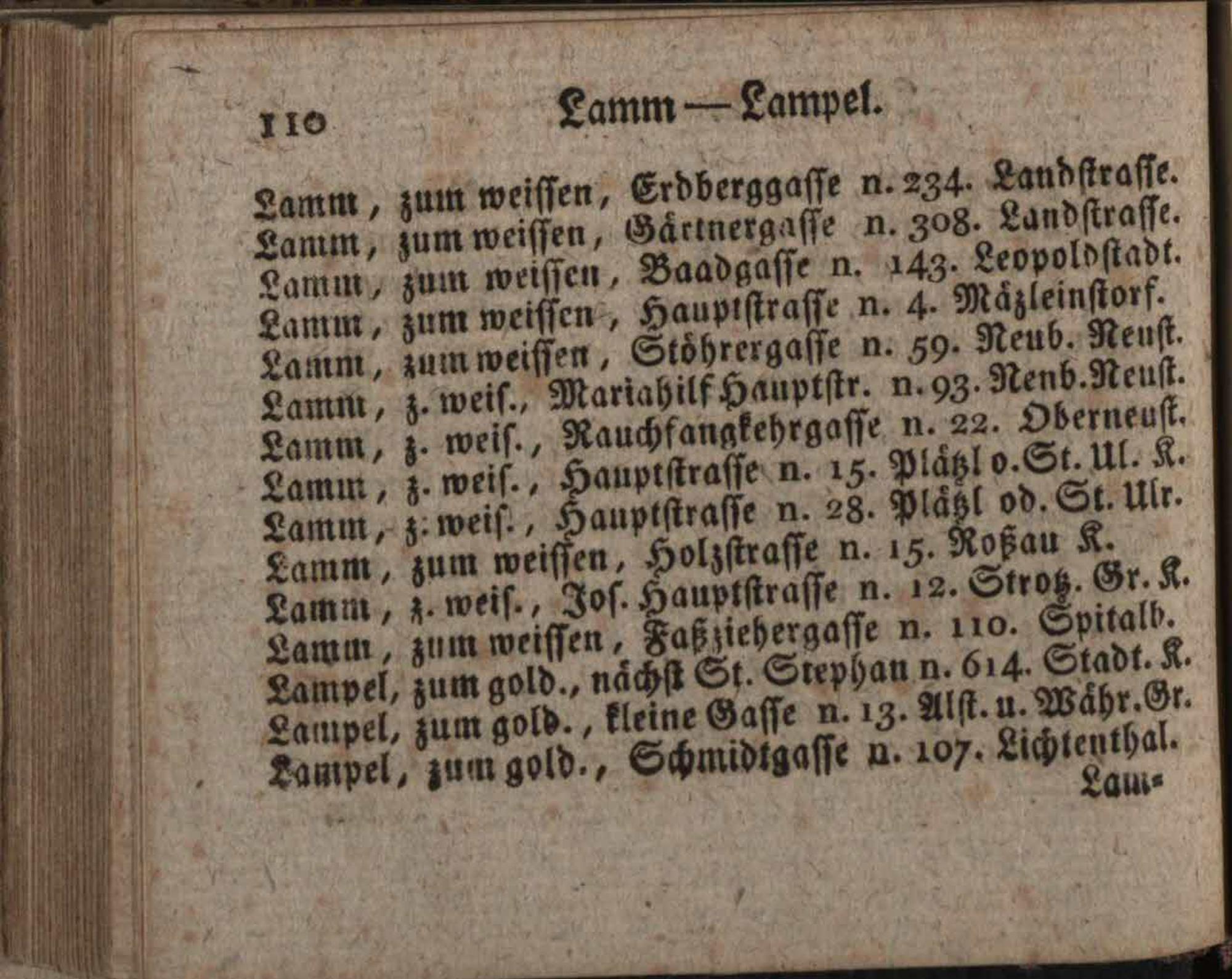 Wiener Schildregister, oder Anweisung, wie man sich auf der Stelle helfen kann, wenn man in Wien den Schild eines Hauses oder eines Kaufmannsgewölbes in und vor der Stadt suchen, und ihn finden will : Zum allgemeinen Nutzen, in kleinem Taschenformat herausgegeben