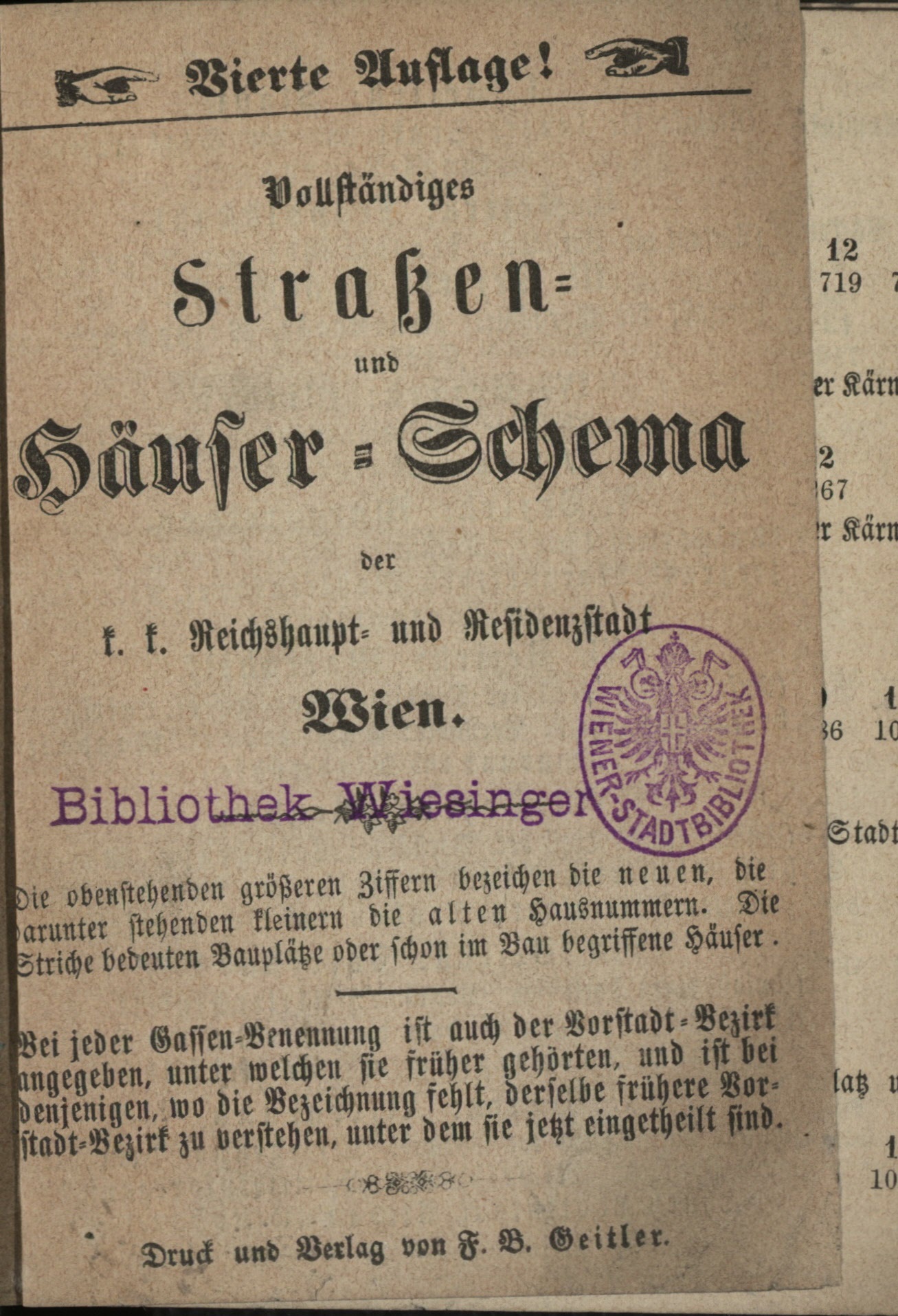 Vollständiges Straßen- und Häuser-Schema der k. k. Reichshaupt- und Residenzstadt Wien