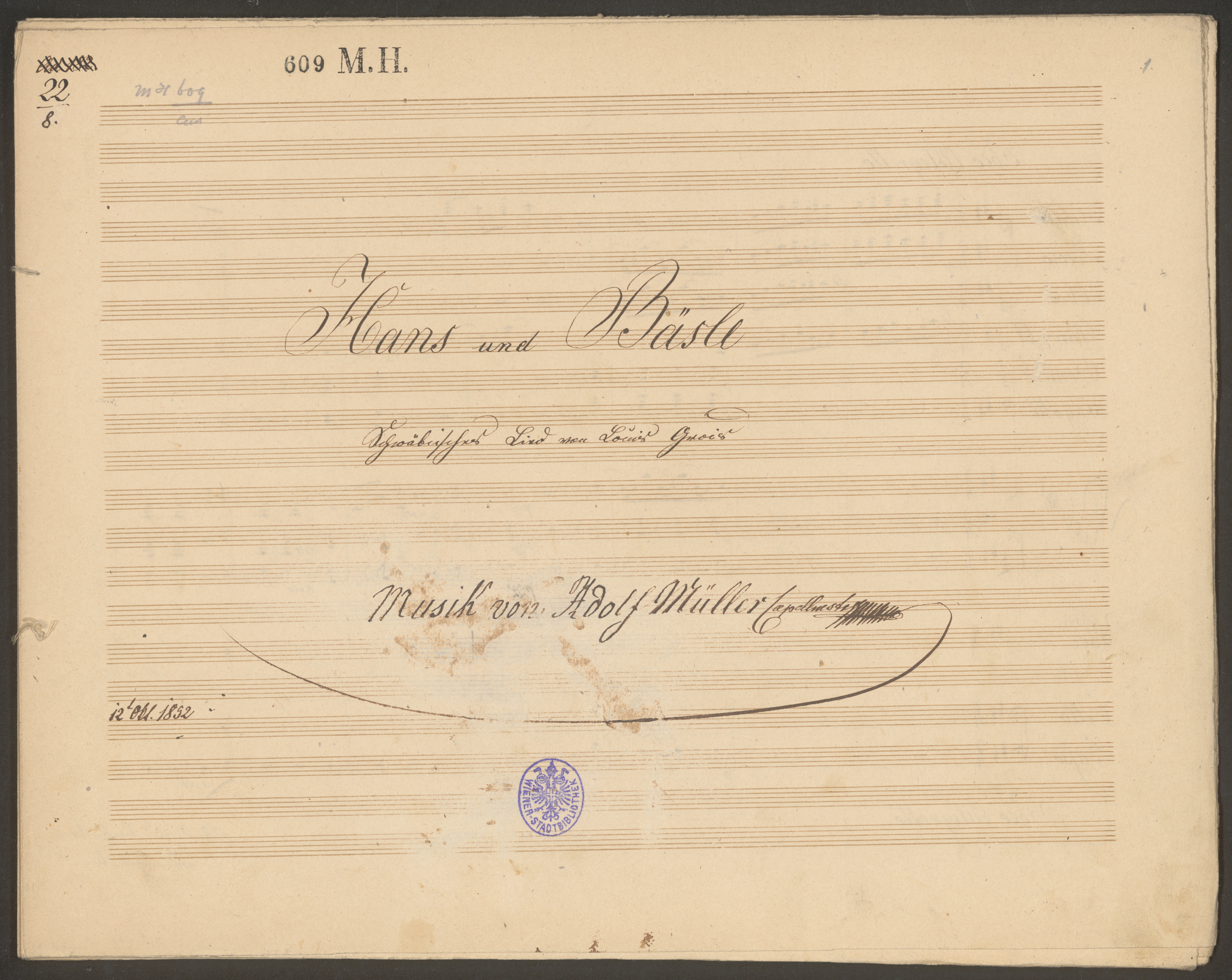 Hans und Bäsle : Schwäbisches Lied / Musik [für eine Singstimme mit Orchesterbegleitung] von Adolf Müller. Von Louis Grois