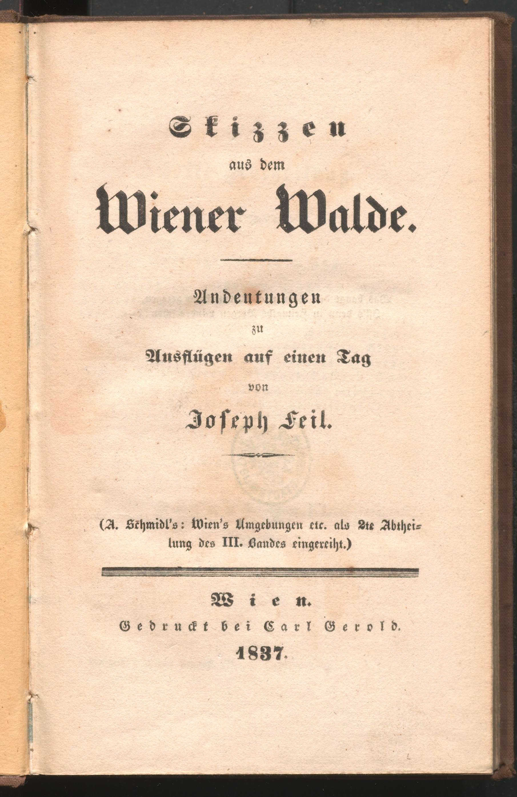 Skizzen aus dem Wiener Walde : Andeutungen zu Ausflügen auf einen Tag / von Joseph Feil