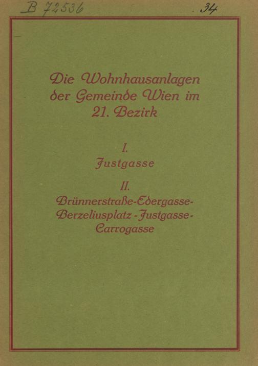 Die Wohnhausanlagen der Gemeinde Wien im 21. Bezirk : I. Justgasse. II. Brünnerstraße - Edergasse - Berzeliusplatz - Justgasse [...]