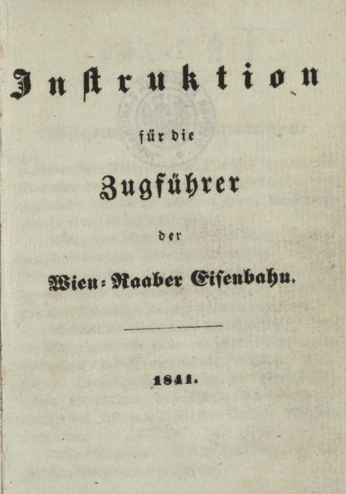 Instruktion für die Zugführer der Wien-Raaber Eisenbahn. [S.l.], 1841