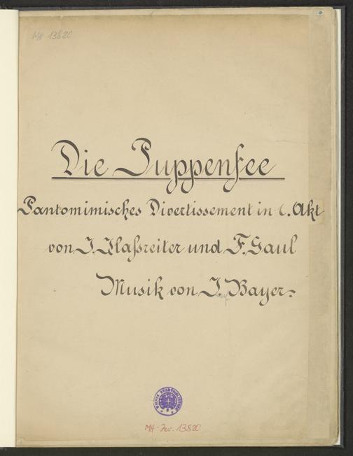 Die Puppenfee : Pantomimisches Divertissement in 1 Akt / Musik von J. Bayer. Von J. Haßreiter und F. Gaul. Wien, [30.11.[18]88]. Wienbibliothek im Rathaus, MH-13820, https://resolver.obvsg.at/urn:nbn:at:AT-WBR-134802 / Public Domain Mark 1.0