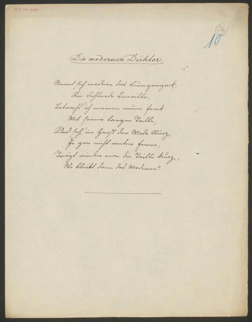 Grillparzer, Franz: Die modernen Dichter. o.O., [ohne Jahresangabe]