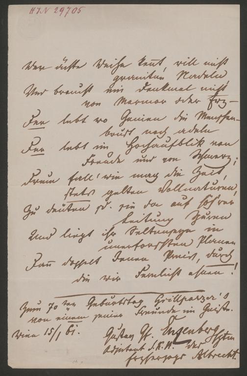 Enzenberg, Gustav Adolf von: Gedicht an Franz Grillparzer. Wien, 1861