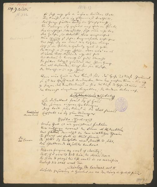 Grillparzer, Franz: Gedichte und Tagebuchnotizen. o.O., 1855