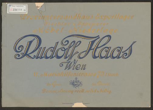 Rudolf Haas Wien : Provinzversandhaus-Exportlager Tischler- u. Tapezierer Möbel-Niederlage [Preis-Album]. Wien : Selbstverlag, [1930?]. Wienbibliothek im Rathaus, d-236111, https://resolver.obvsg.at/urn:nbn:at:AT-WBR-580154 / Public Domain Mark 1.0