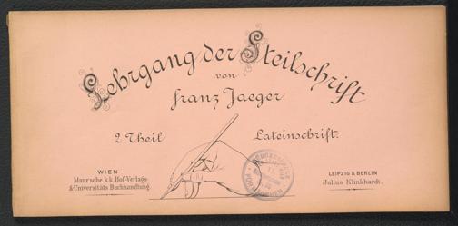 Lehrgang der Steilschrift : Current-, Latein- und Rondschrift. <<Die>> steile Lateinschrift in 2 Unterrichtsstufen / von Franz Jaeger. Wien : Manz ; Leipzig ; Berlin : Klinkhardt : 2 / von Franz Jaeger. Wien : Manz ; Leipzig ; Berlin : Klinkhardt, [1893]. Wienbibliothek im Rathaus, C-338897, https://resolver.obvsg.at/urn:nbn:at:AT-WBR-581568 / Public Domain Mark 1.0
