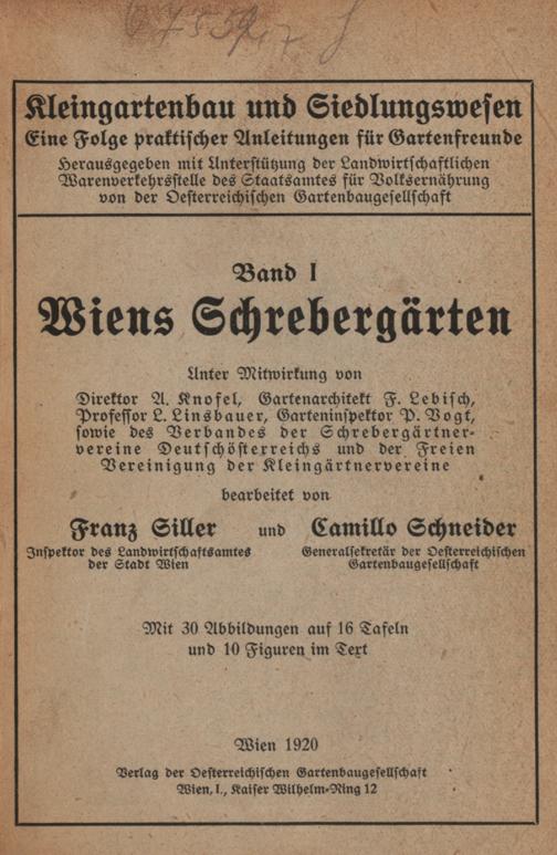Wiens Schrebergärten / ... bearb. von Franz Siller u. Camillo Schneider. Wien : Verl. d. Österreichischen Gartenbaugesellschaft, [...]