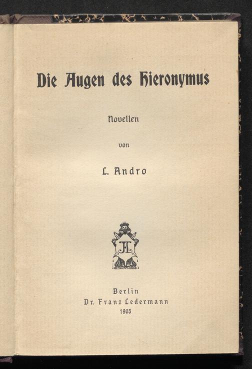 Die Augen des Hieronymus : Novellen / von L. Andro. Berlin : Ledermann, 1905