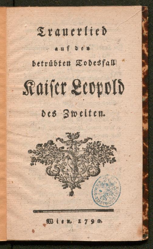 Trauerlied auf den betrübten Todesfall Kaiser Leopold des Zweiten. Wien, 1792