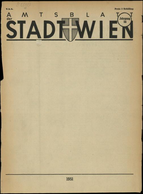 Amtsblatt der Stadt Wien. Wien : Stadt Wien - Presse- und Informationsdienst, 1.1892 - 46/47.1938/39; 48.1940,1-4; 50.1945 [...]