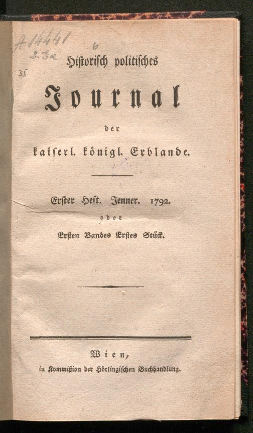 - PDF Ankündigung eines historisch politischen Journals der kaiserl. königl. Erblande. Welches mit 1ten Jäner 1792 anfängt, und mit Anfang jedes Monaths fortgesetzet wird.