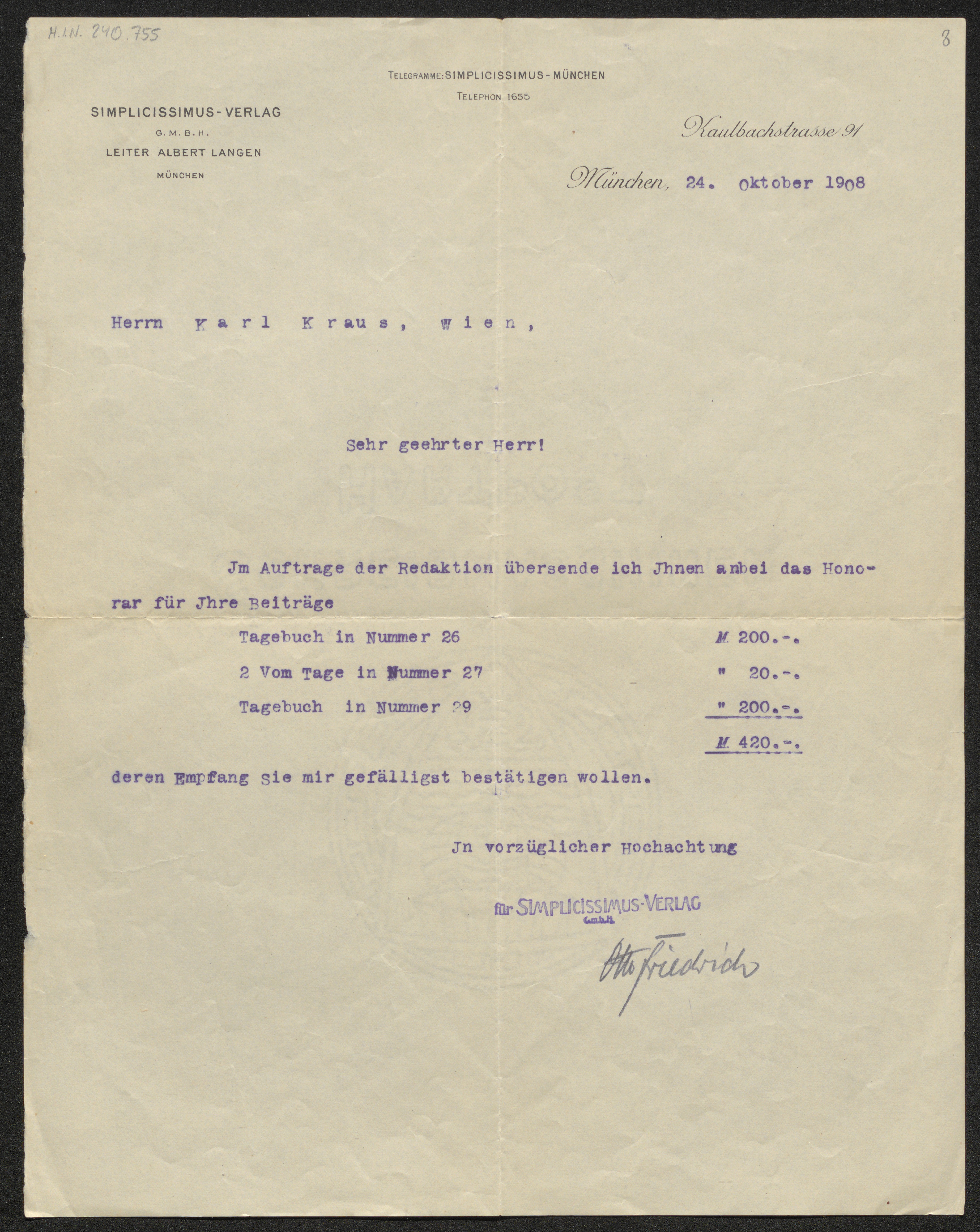 Brief an Karl Kraus