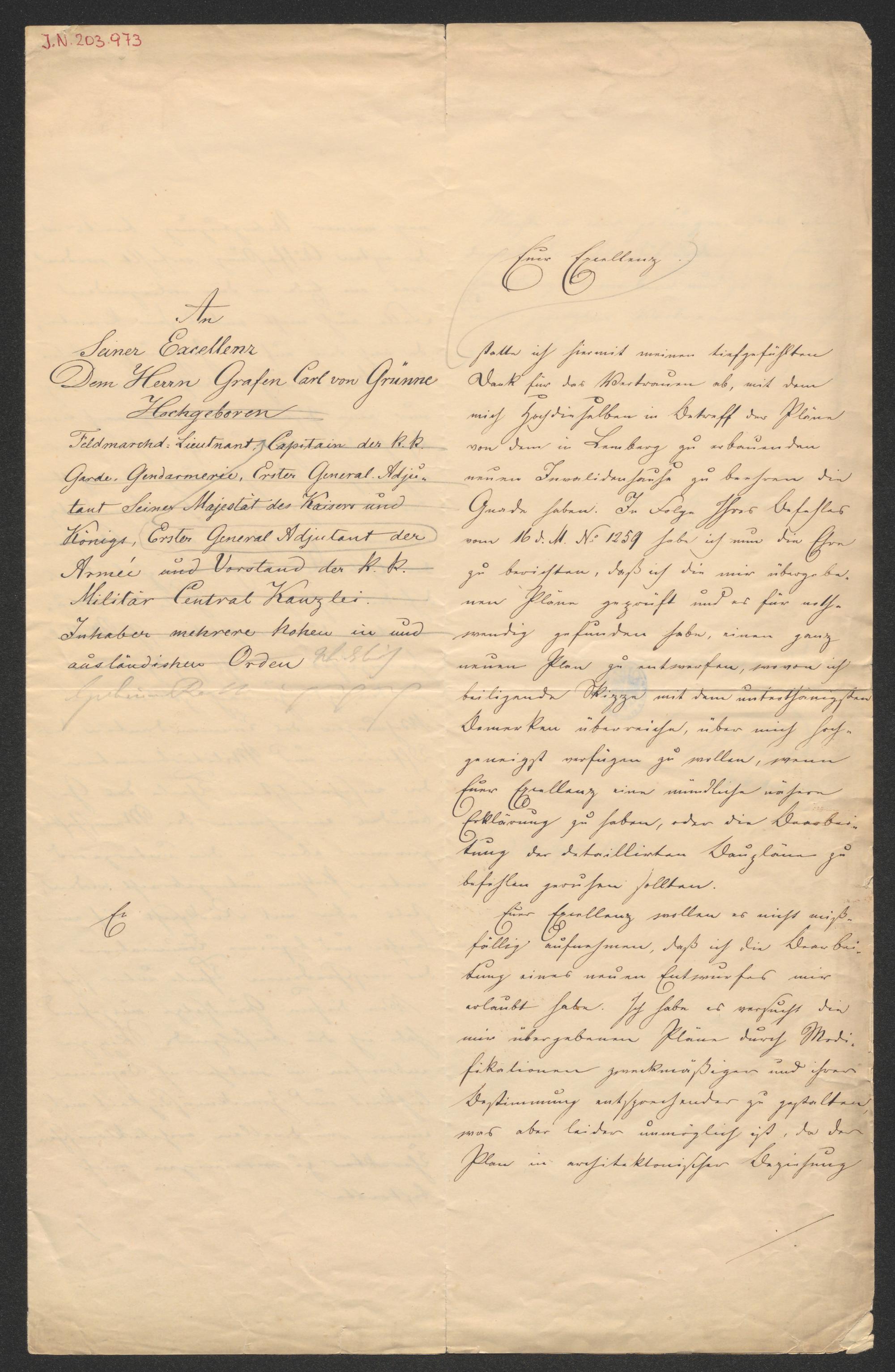 Brief an Karl Ludwig von Grünne
