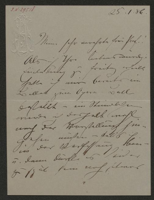 Abich, Julie: Billett an eine Frau Professor. o.O., 25.1.1886