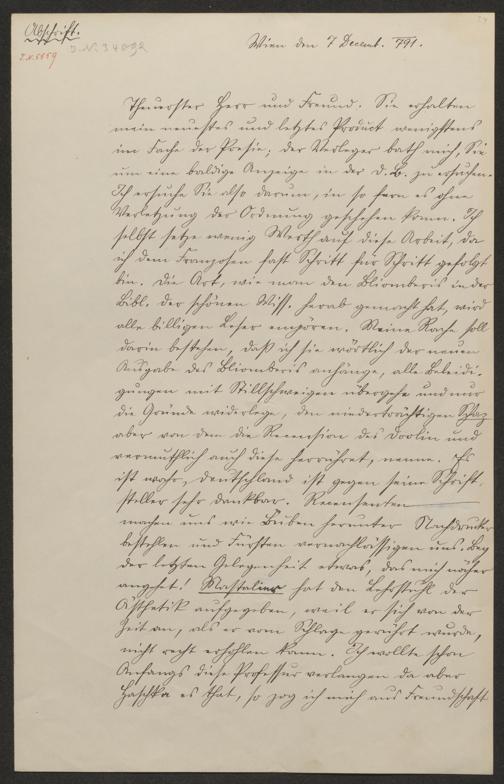 Alxinger, Johann Baptist von: Brief an Friedrich Nicolai. Wien, 7.12.1791